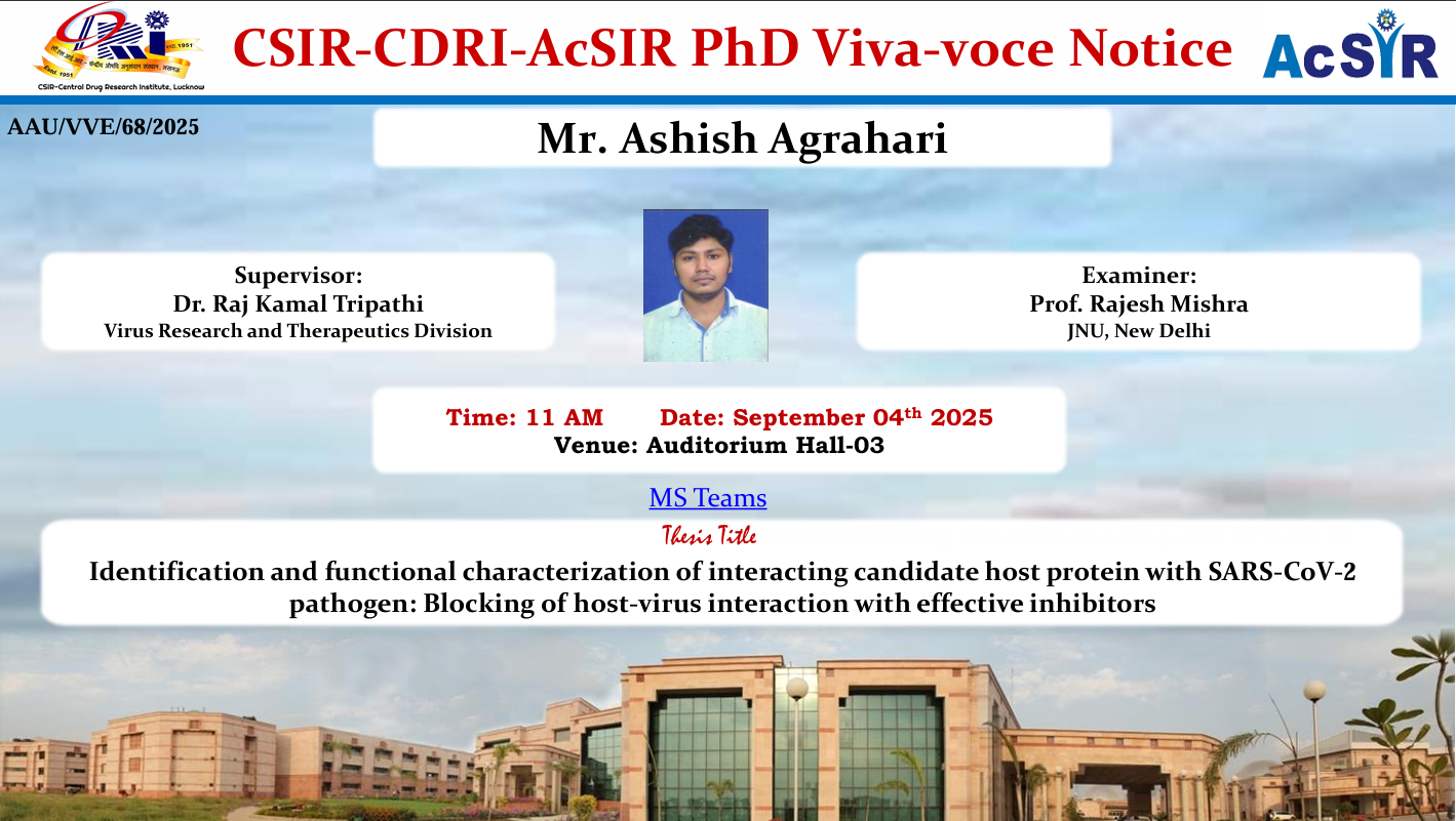 The Virus Research & Therapeutics Division at CSIR-Central Drug Research Institute (CDRI) focuses on advancing research to combat viral diseases of national and global significance. It conducts cutting-edge studies on viral pathogenesis, antiviral drug discovery, and vaccine development, leveraging molecular biology and virology expertise. The division aims to develop novel therapeutics and diagnostics for viral infections, contributing to affordable healthcare solutions.