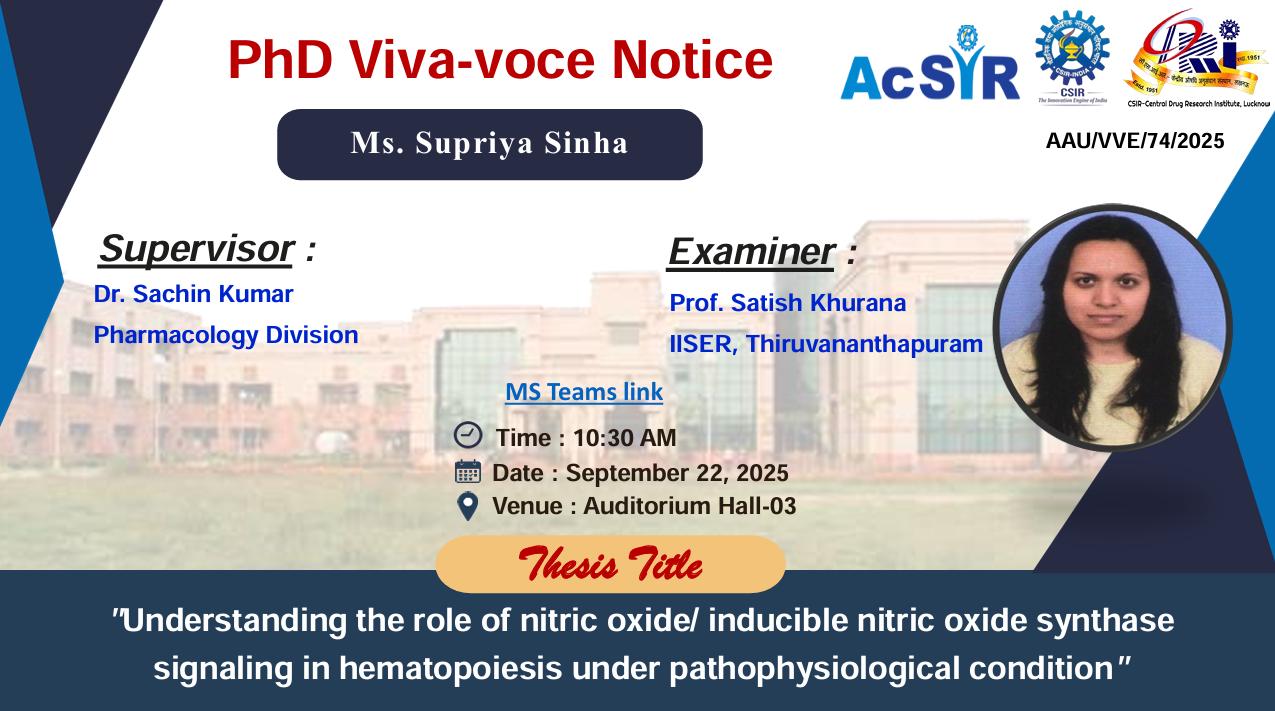 Pharmacology Division is one of the Oldest and most vibrant Divisions of the Institute, with a rich history in the launch of several Drugs. The core activities of the Division include Cutting Edge Research in Cardio-vascular and Metabolic Disorders using cell based and animal models, Screening molecules using state of the art in vivo and in vitro animal models towards Drug Discovery. The Division is well equipped with a GLP-accredited pre-clinical Safety Pharmacology Facility, and has a Center of Excellence for Fundamental and translational Research in Ayurveda, awarded by the Ministry of Ayush, and inaugurated by the Hon. Prime Minister, towards scientific validation of traditional knowledge systems.